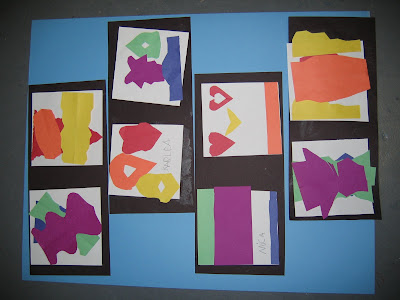 Take a look at abstract diptychs created by Mrs. Doell's class. We folded squares of color in half to cut symmetrical shapes and then stacked them to make our cool and warm abstract collages.